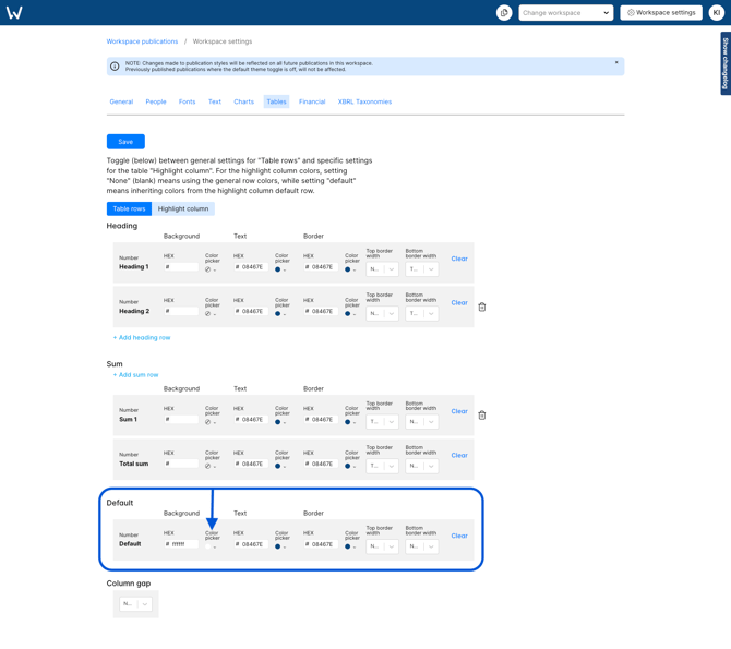 Changing the default table background affects all tables in your workspace.