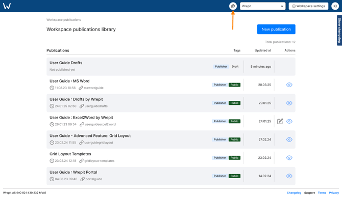 In the workspace Publications library: