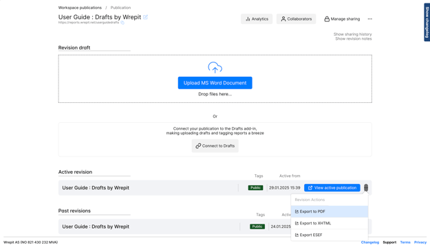 Once a draft has been uploaded to the portal, you can export it to any available format. You can export from two places.